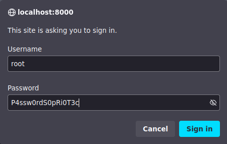 We start the box with creds admin / 0D5oT70Fq13EvB5r.