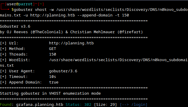 Running gobuster finds us graphana subdomain which accepts privded credentials.