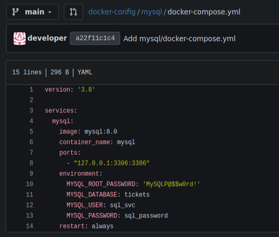 MYSQL_ROOT_PASSWORD: 'MySQLP@$$w0rd!'