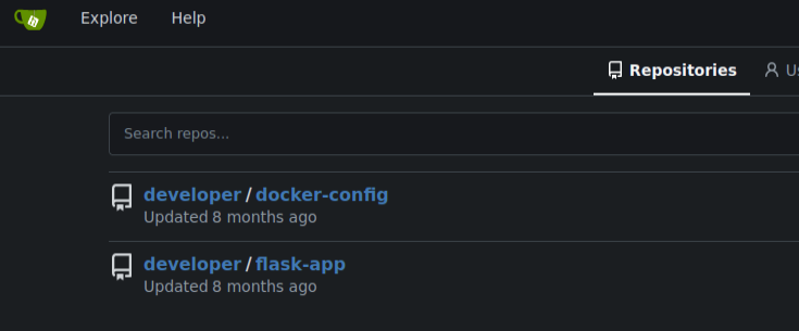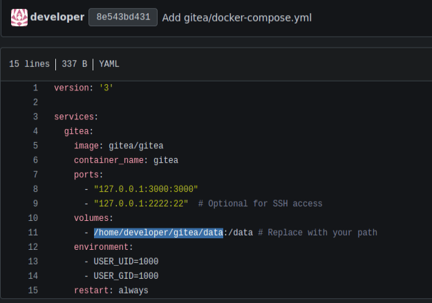 developer:x:1000:1000:developer:/home/developer:/bin/bashLooking for files to download, I’ve found that everything is mounted in /home/developer/gitea/data.