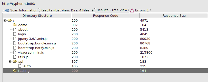 http://cypher.htb/ [200 OK] Bootstrap, Country[RESERVED][ZZ], HTML5, HTTPServer[Ubuntu Linux][nginx/1.24.0 (Ubuntu)], IP[10.129.220.106], JQuery[3.6.1], Script, Title[GRAPH ASM], nginx[1.24.0]