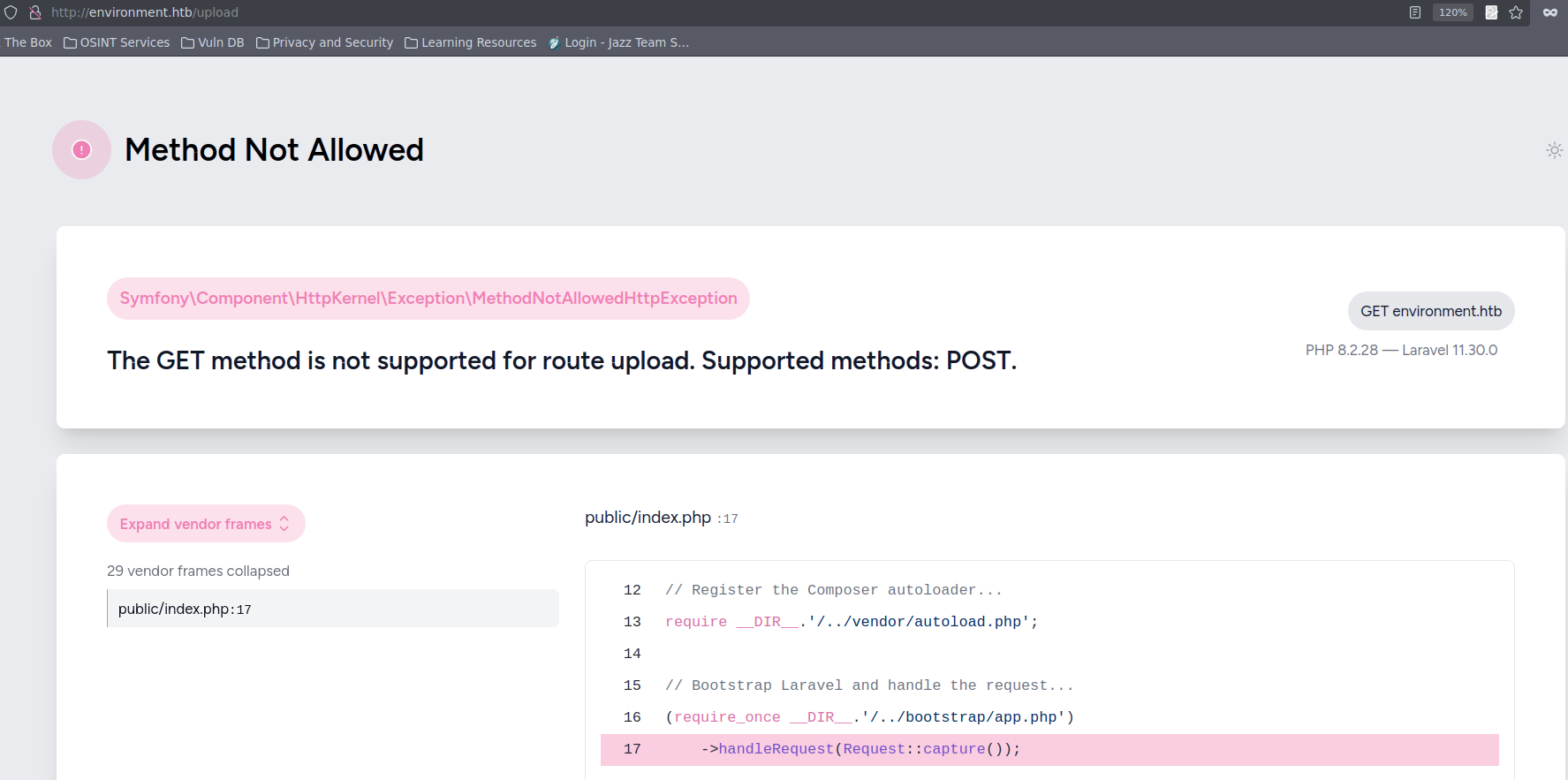 We do know that laravel is in debug mode and there is a CVE for bypassing loggin . /login?--env=preprod
