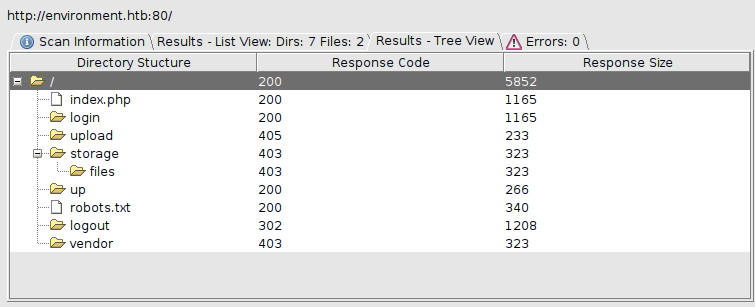 We can find the login panel, up status panel and learn that everything is made using laravel. Gobuster doesnt find any subdomains.