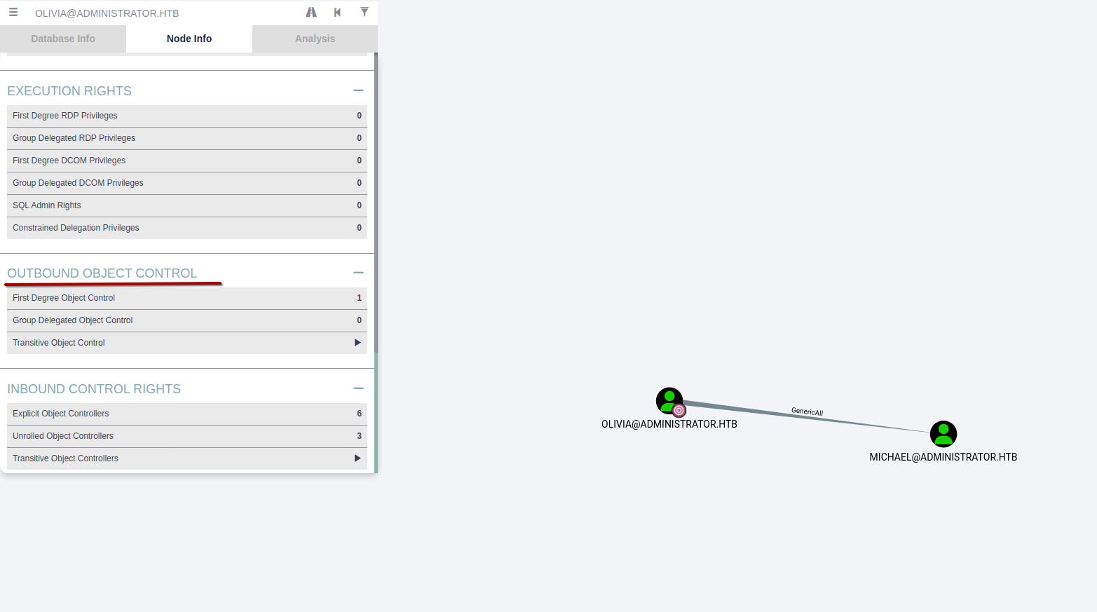 We can see that olivia has GenericAll privs over michael. The manual for bloodhound is helpful here.