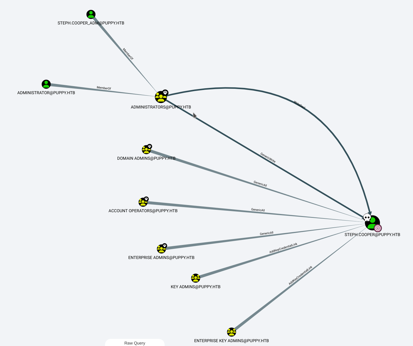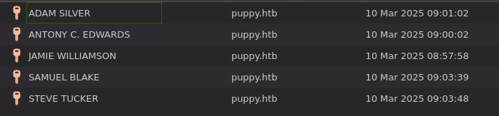 SMB 10.129.4.17 445 DC [+] PUPPY.HTB\ANT.EDWARDS:Antman2025! With that account we finally get a path to the admin.